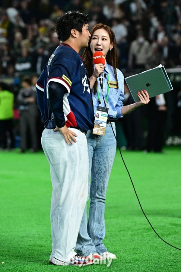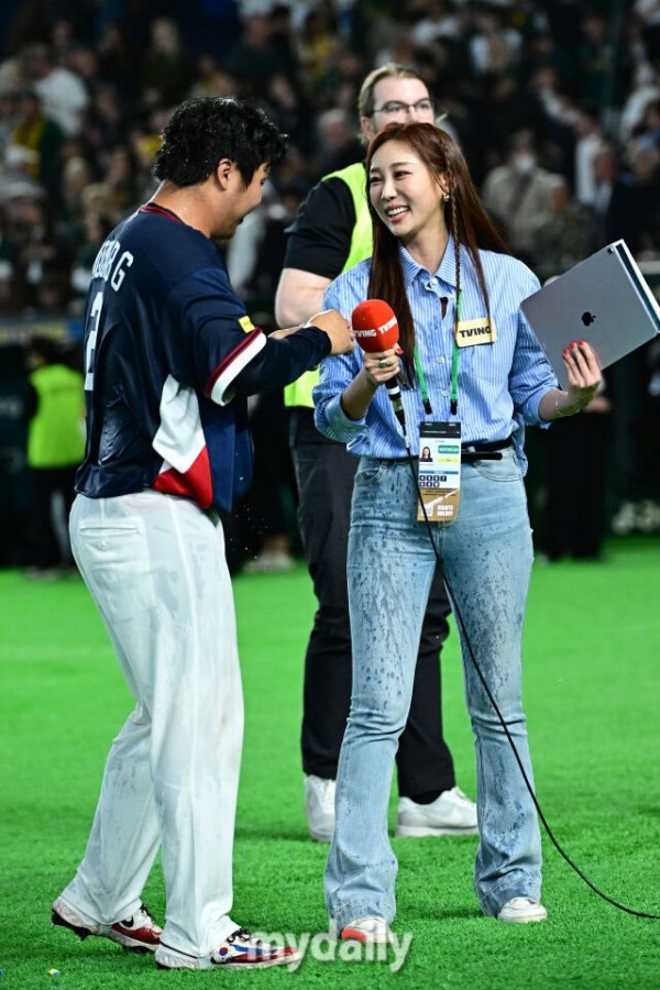 8강진출후 문보경과 미녀 아나운서.